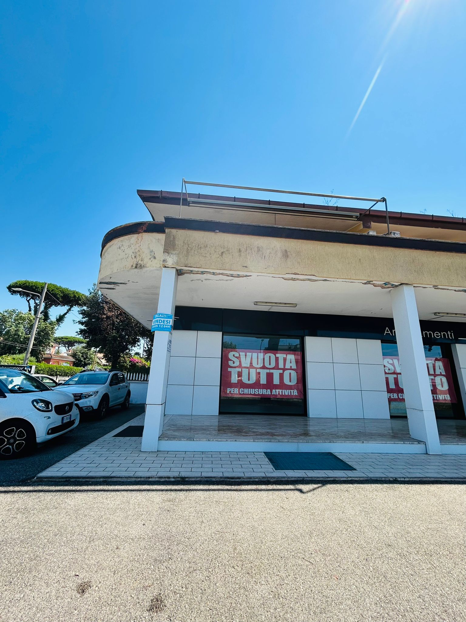 Il locale dispone anche di un ampio parcheggio comune con gli altri locali per visitatori – clienti. Due ampie vetrine in alluminio ad angolo .